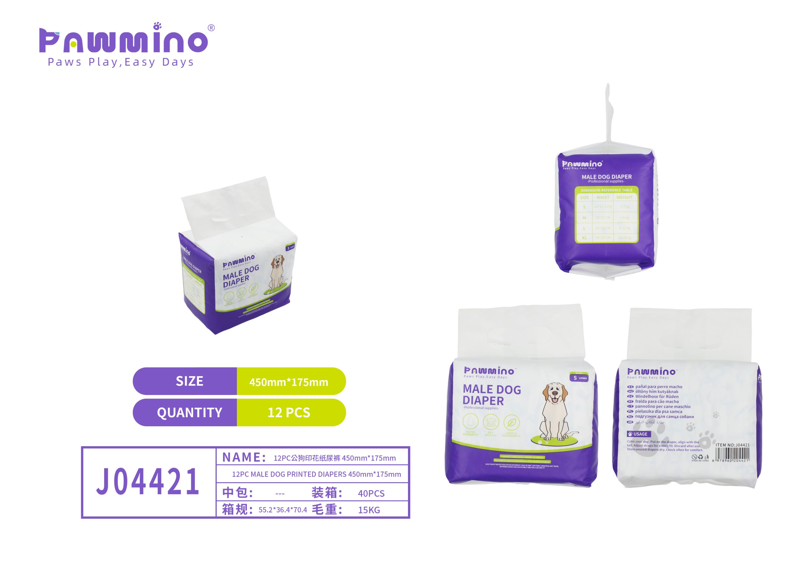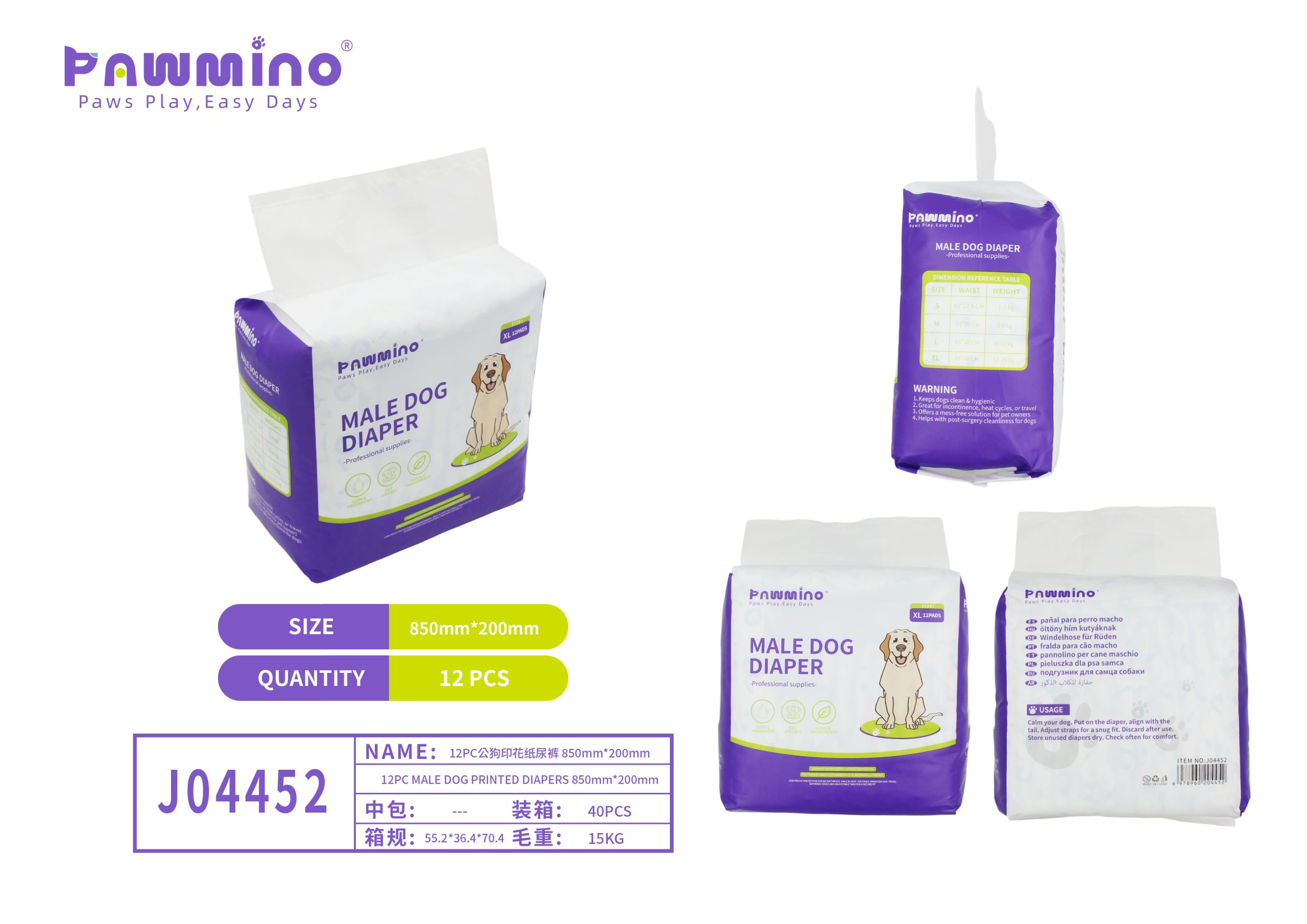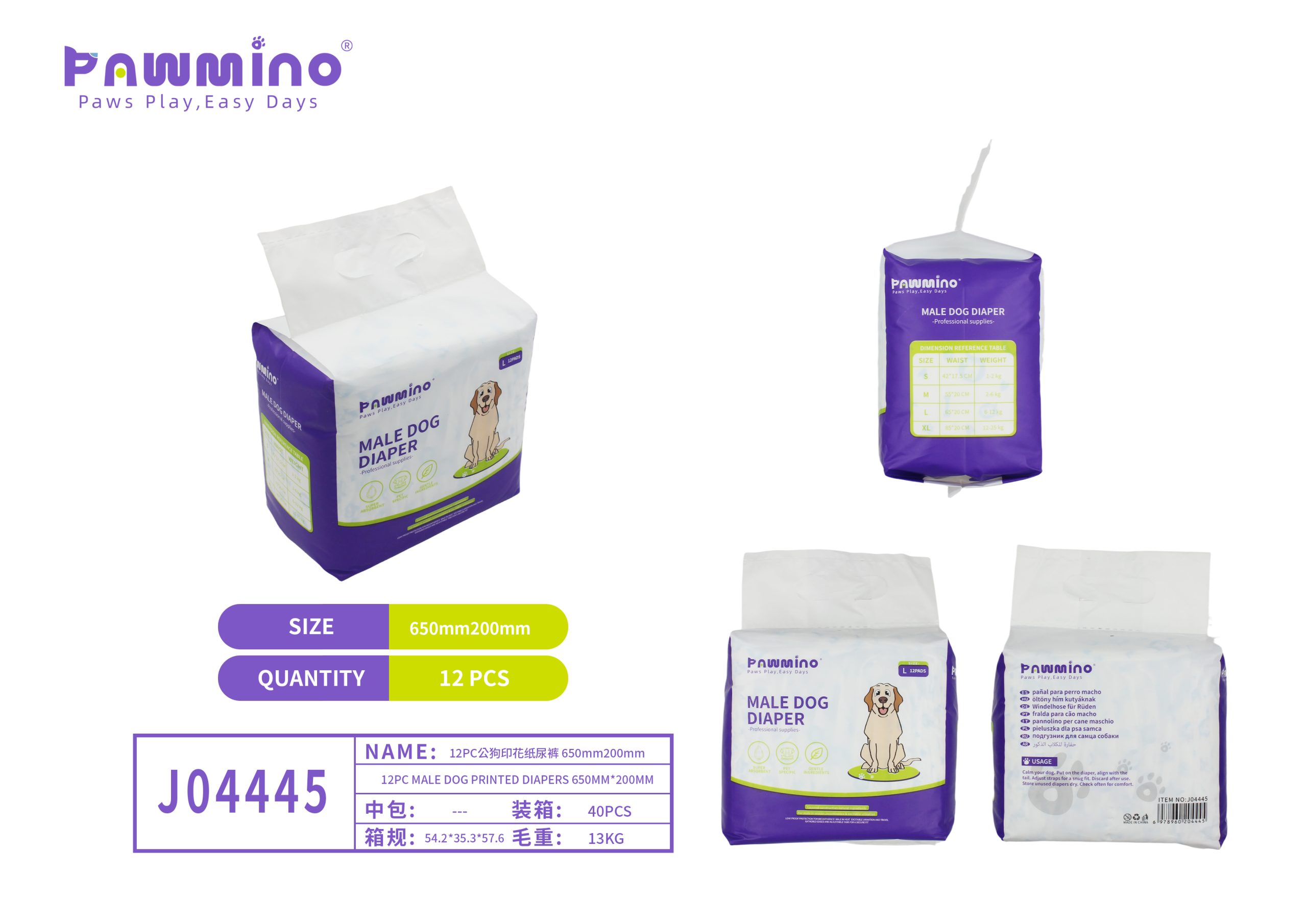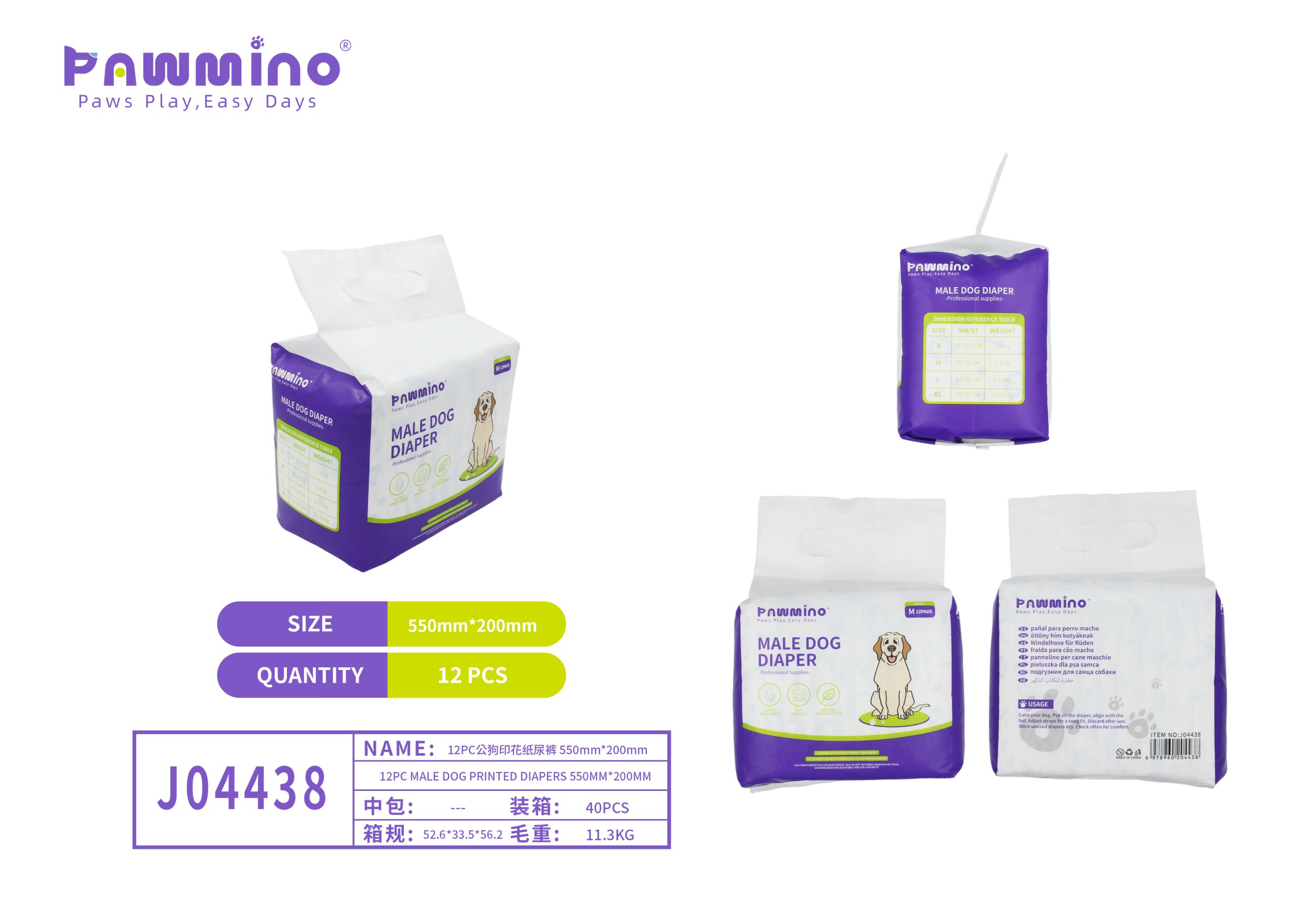 Pawmino Male Dog Diapers (550mm × 200mm)