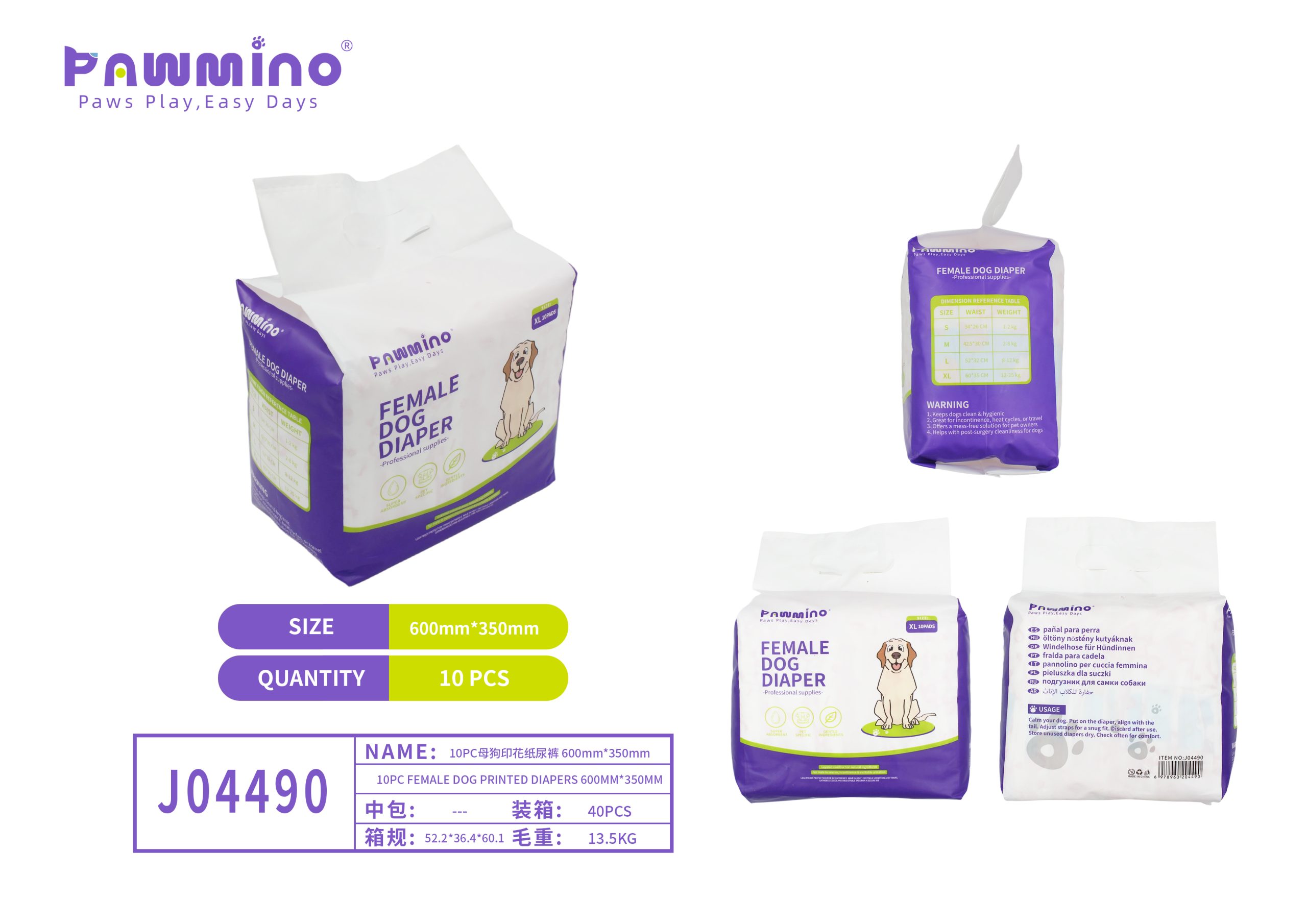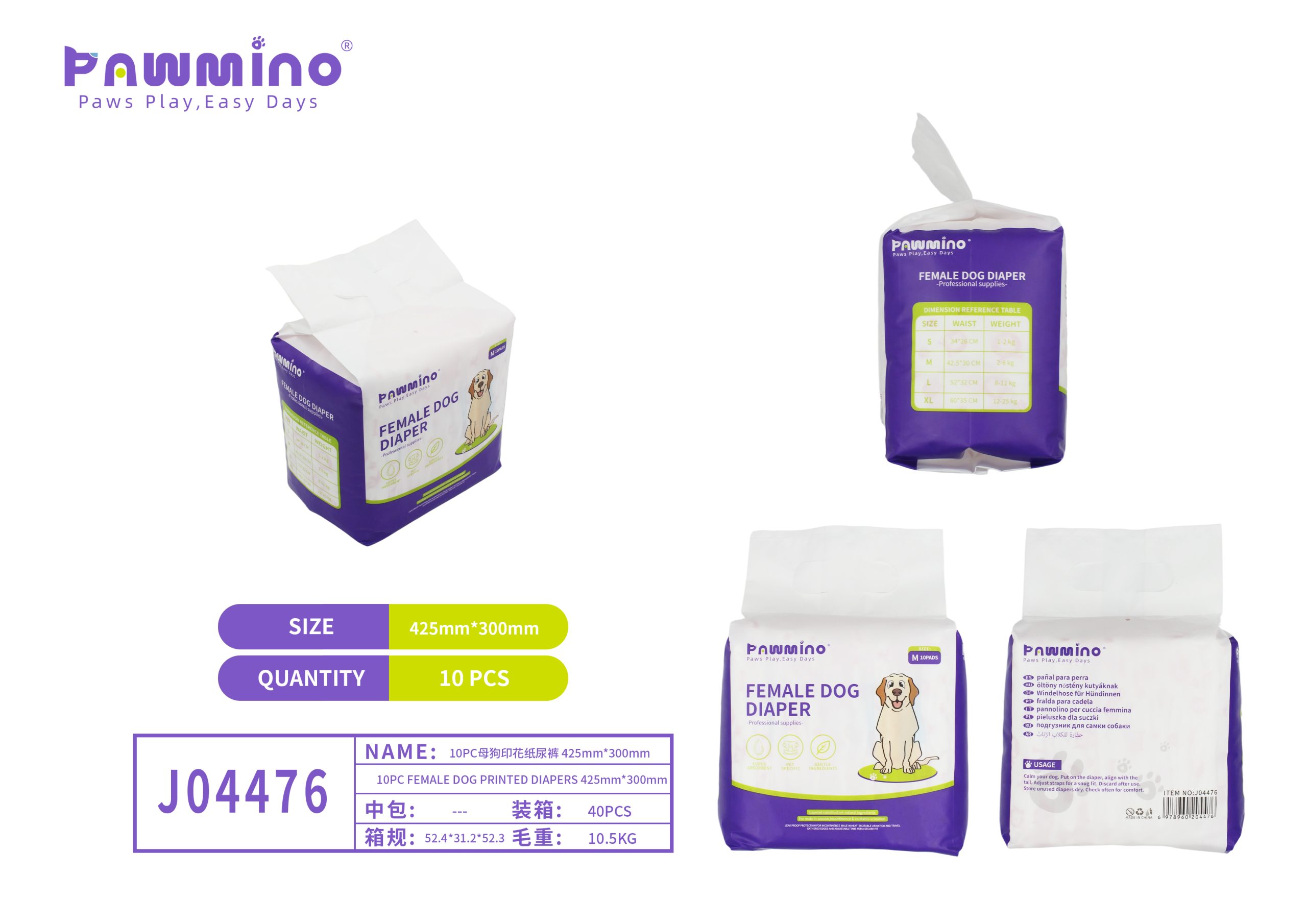 Pawmino Female Dog Diaper (425mm x 300mm)