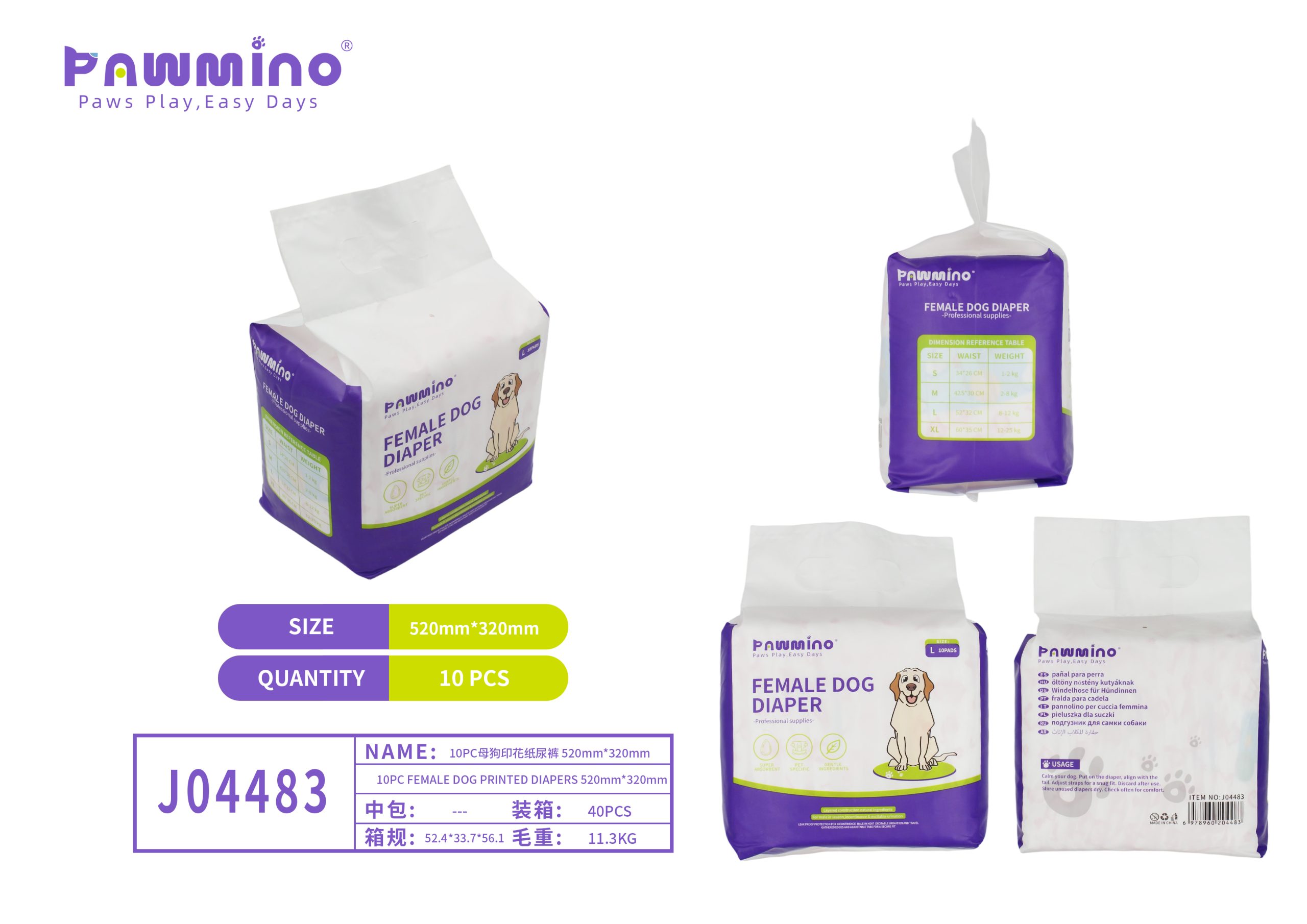 Pawmino Female Dog Diaper (520mm x 320mm)