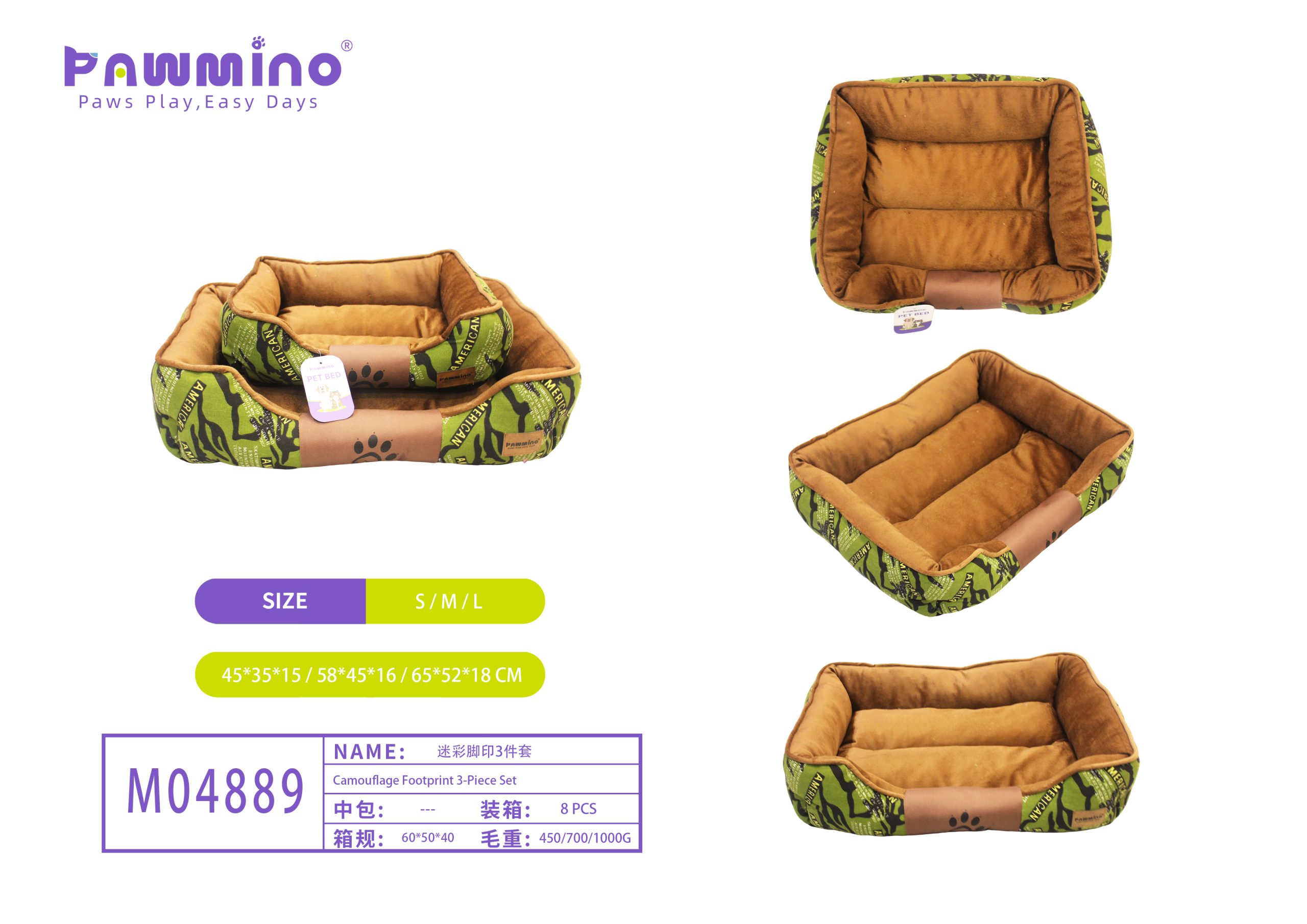 Stylish multi-size pet bed set