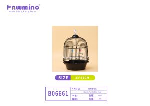Classic round bird cage with sturdy plastic base, includes perch and feeders. Designed for comfort and easy cleaning.