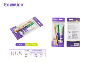 Comprehensive pet dental kit with toothbrush, dual finger brushes, and toothpaste for thorough cleaning and fresh breath.