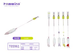 Cat teaser wand featuring soft rabbit fur and dangling beads to stimulate hunting instincts. Lightweight design with a 750mm length for easy control.